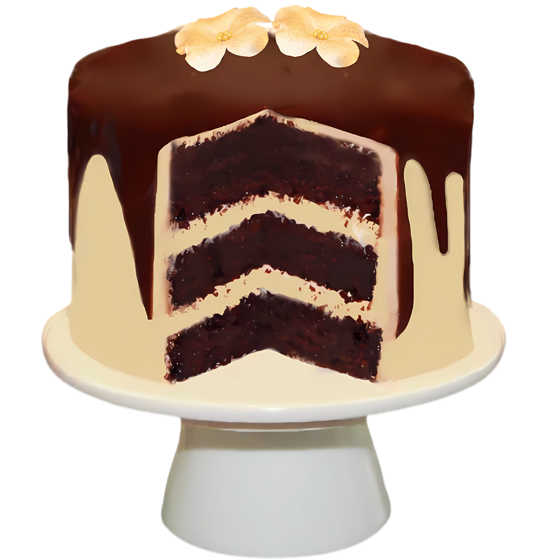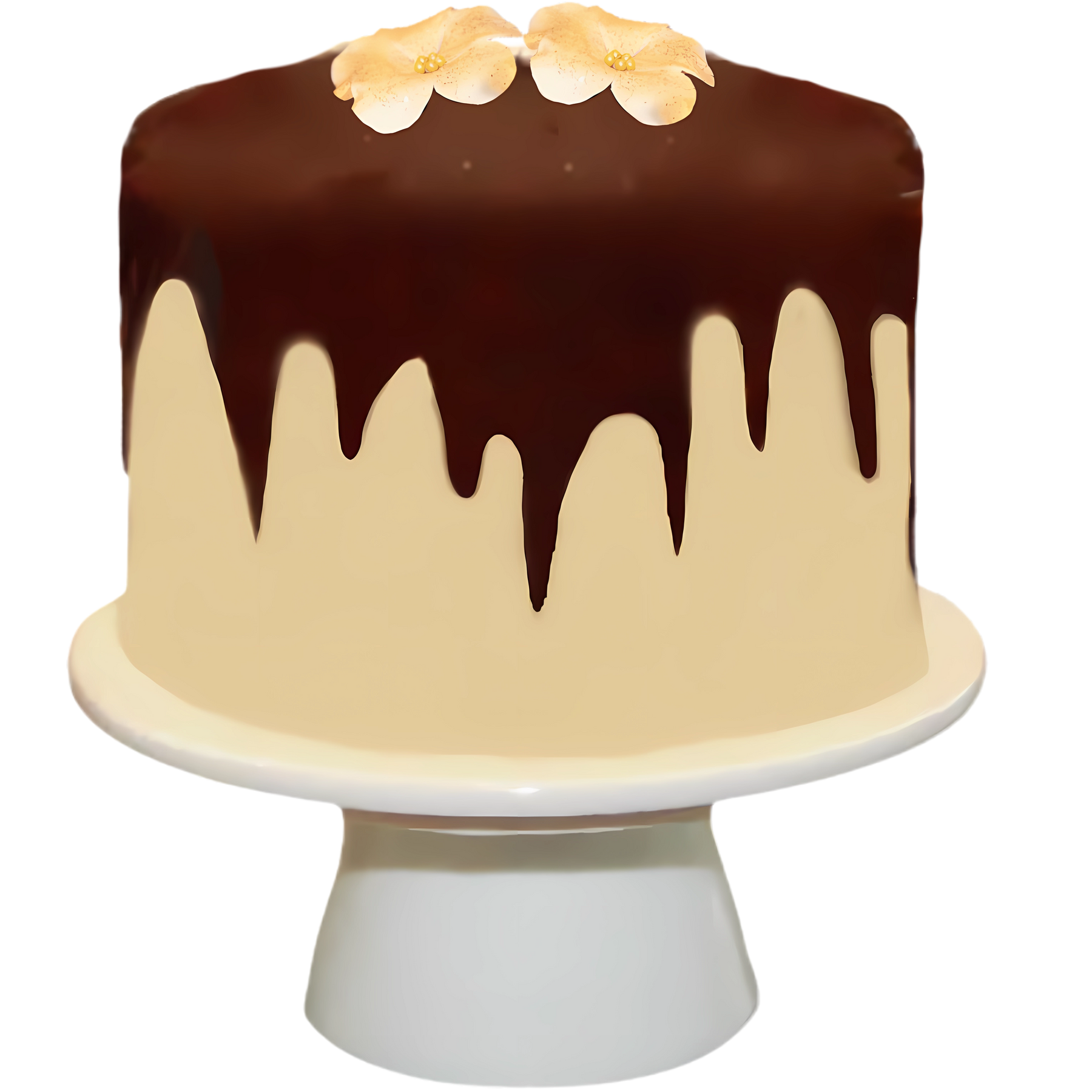 A beautiful all natural Callebaut chocolate mud cake filled with salted caramel buttercream, decorated with drippings of rich dark Callebaut chocolate ganache and hand made Golden Flower decoration (optional) Please note that the size of the decoration remains the same as for the 4 inch cake for all cake sizes. Images here are of the 4 inch regular-sized cake. Made from the finest ingredients, our bake experts hand-craft every element to perfection. Cake is presented in a beautiful white box and the Golden Flower is presented separately in a gift box.