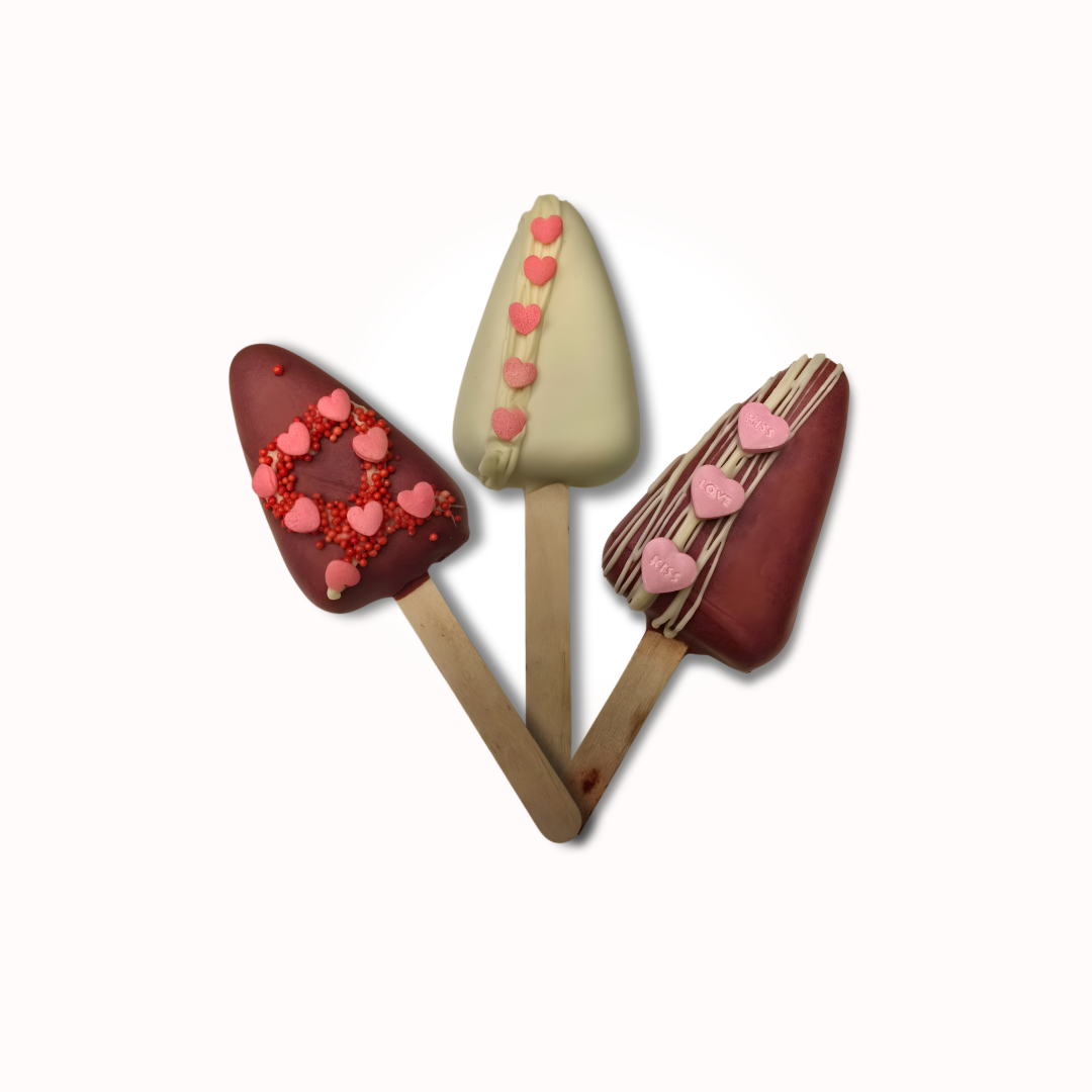 Celebrate love in the sweetest way with our beautifully handcrafted Valentine’s Cakepops. Each cakepop is dipped in smooth, premium chocolate and decorated with charming heart designs, romantic drizzles, and festive sprinkles in classic Valentine’s tones, making them a perfect treat for the season of love.
