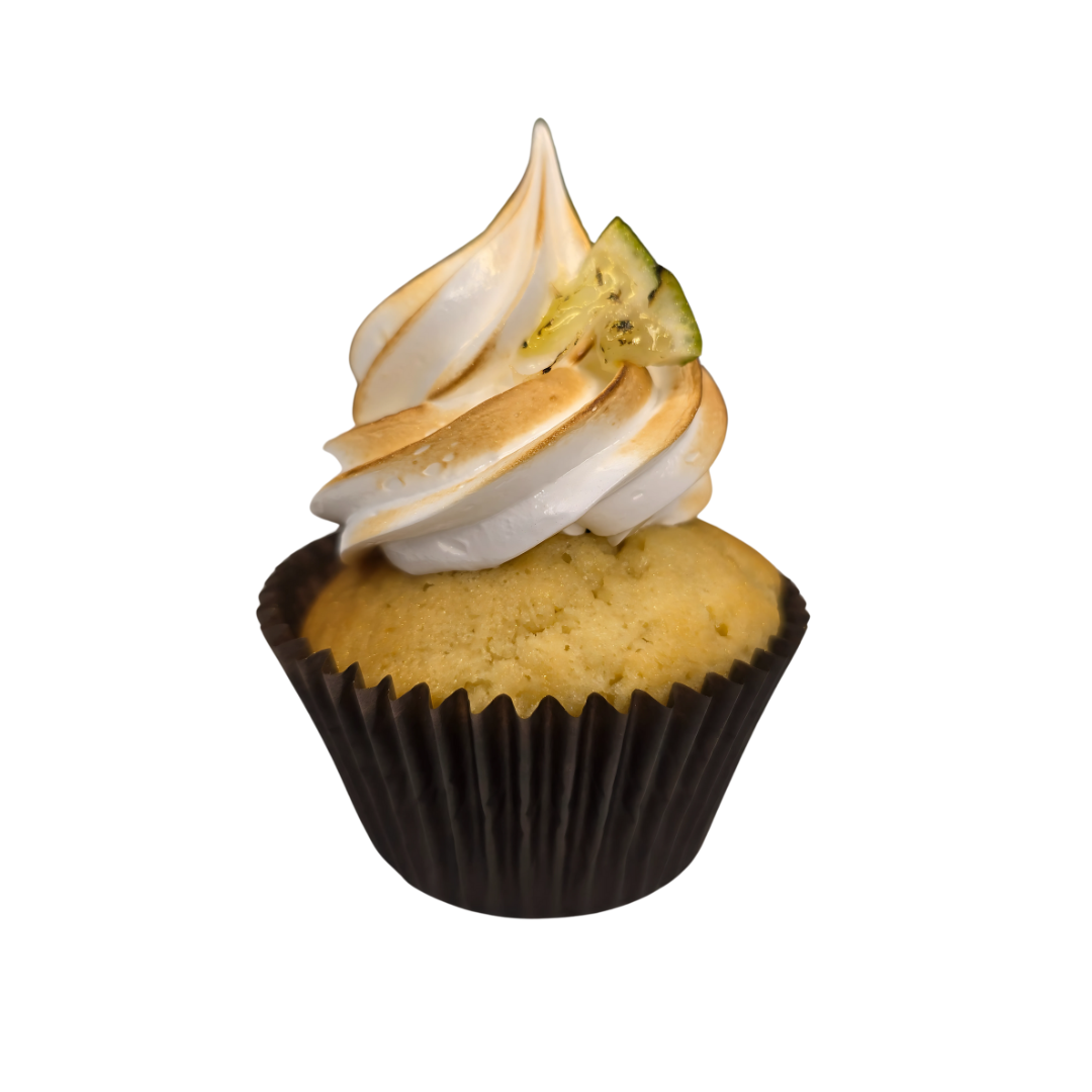 Bright, tangy, and irresistibly smooth – our Lemon Pie cupcake is sunshine in every bite. Fluffy vanilla sponge is filled with luscious lemon curd, topped with a swirl of silky meringue, and lightly torched for that golden pie finish.