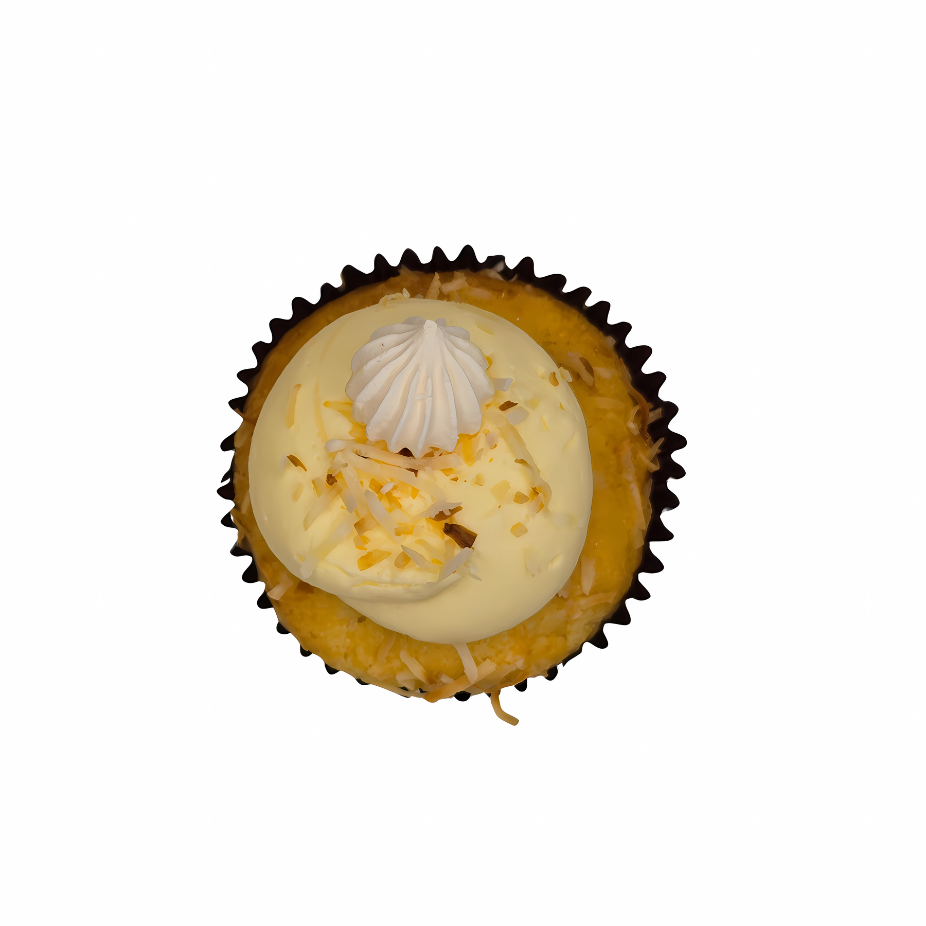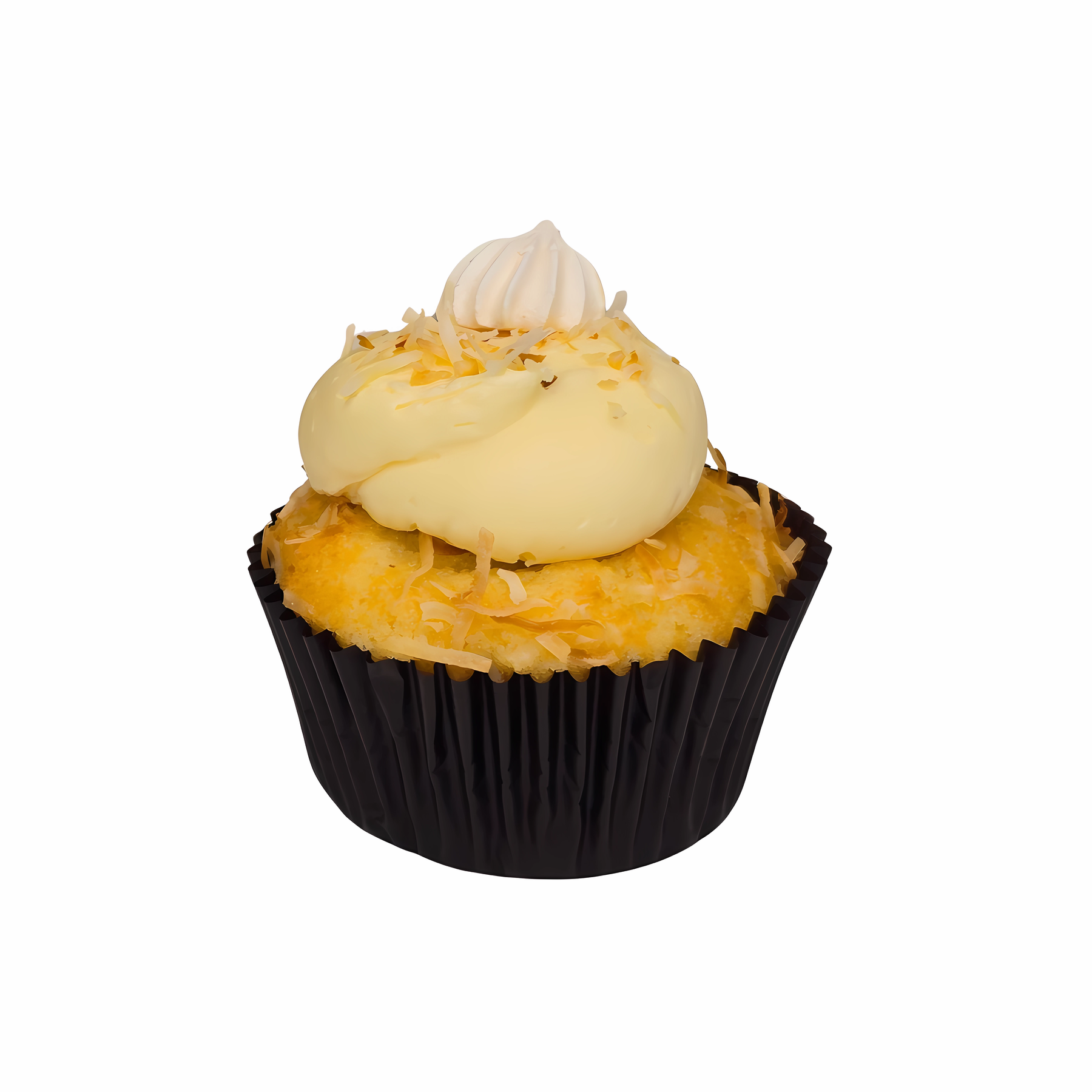 A tropical delight with a playful twist, our Coconut & Meringue Cupcake is all about light, creamy flavour and soft, tender texture. This cupcake is topped with a swirl of smooth coconut buttercream, sprinkled with toasted coconut flakes for a gentle crunch, and finished with a delicate meringue kiss on top.