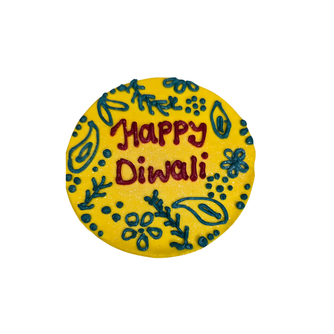 Celebrate Diwali in style with our limited‑edition Diwali Cake, crafted to delight the eyes and tantalise the taste buds. Inspired by the Festival of Lights, this cake features a radiant yellow glaze and artful, traditional designs finished with a hand‑piped “Happy Diwali” message.