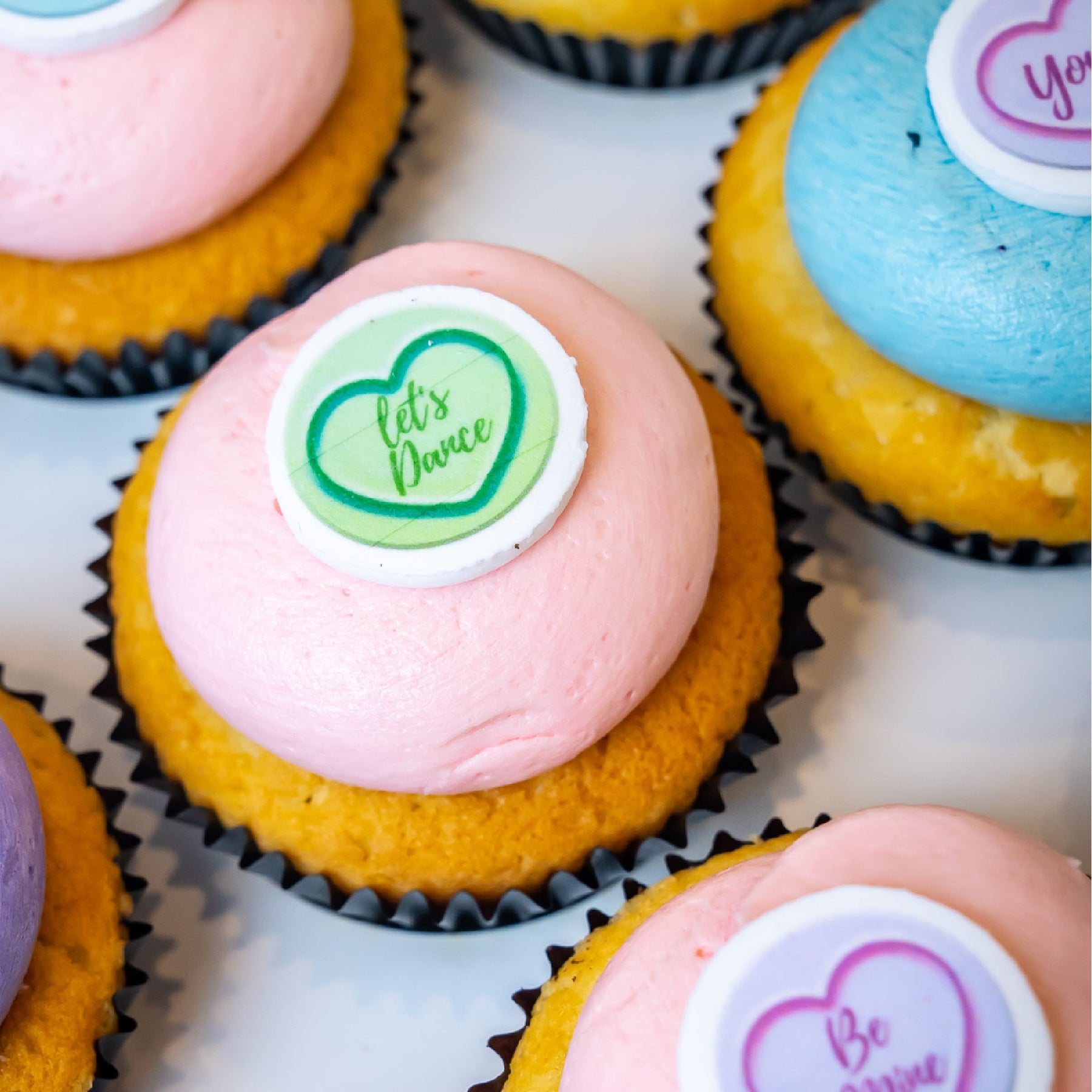 • Our tokens are printed using the highest quality edible fondant sheets. We hand cut each token and mount the print onto white fondant to sit beautifully on top of your cupcakes.