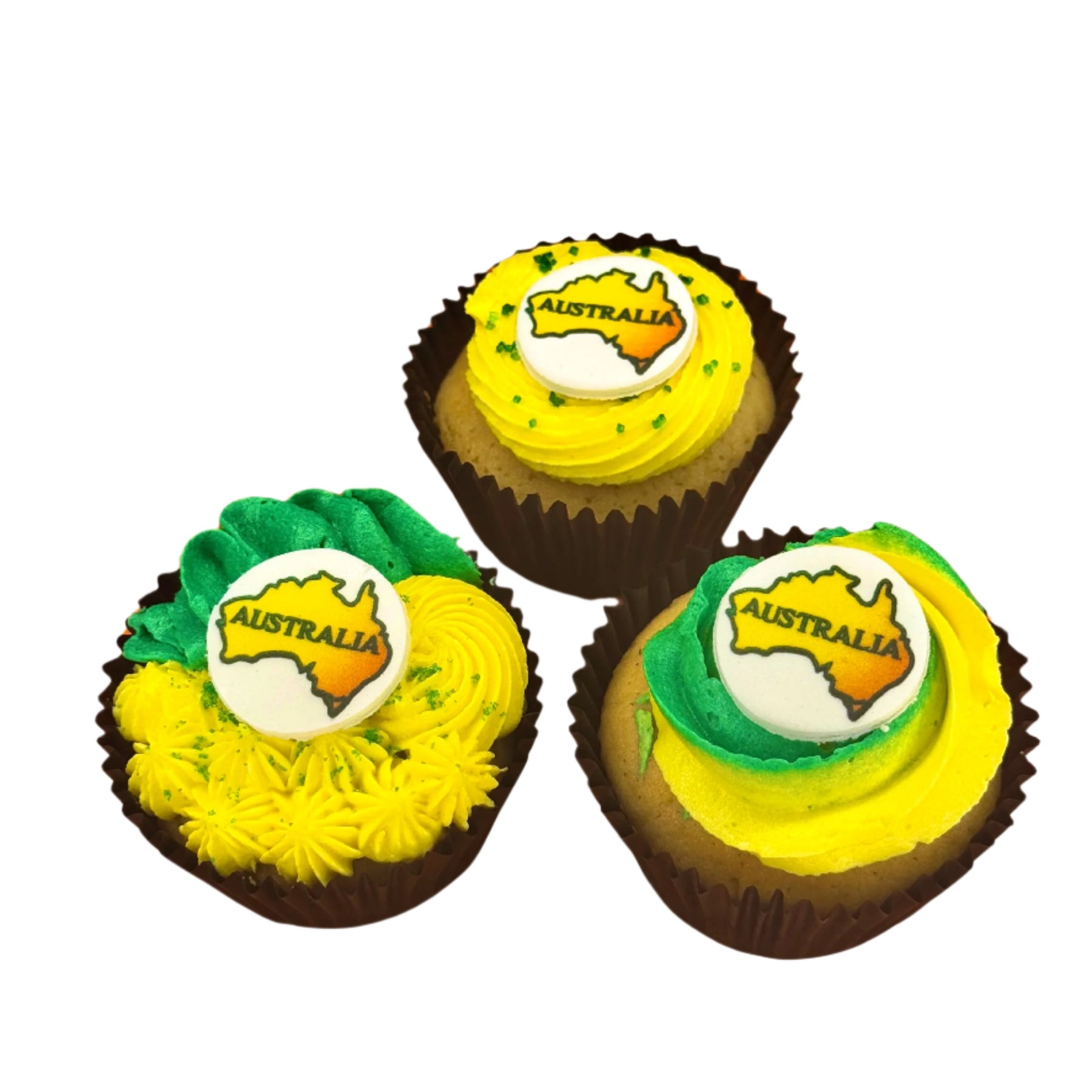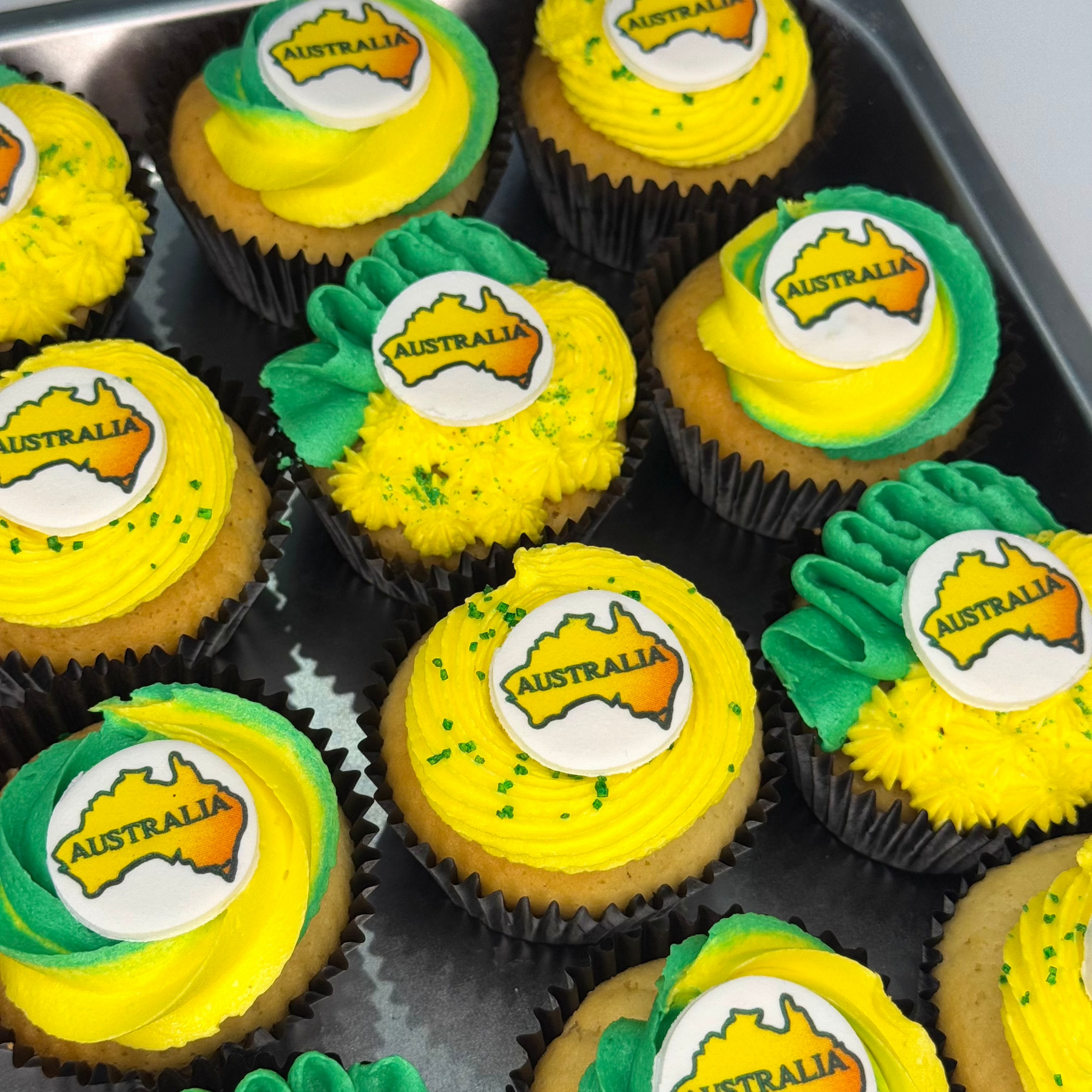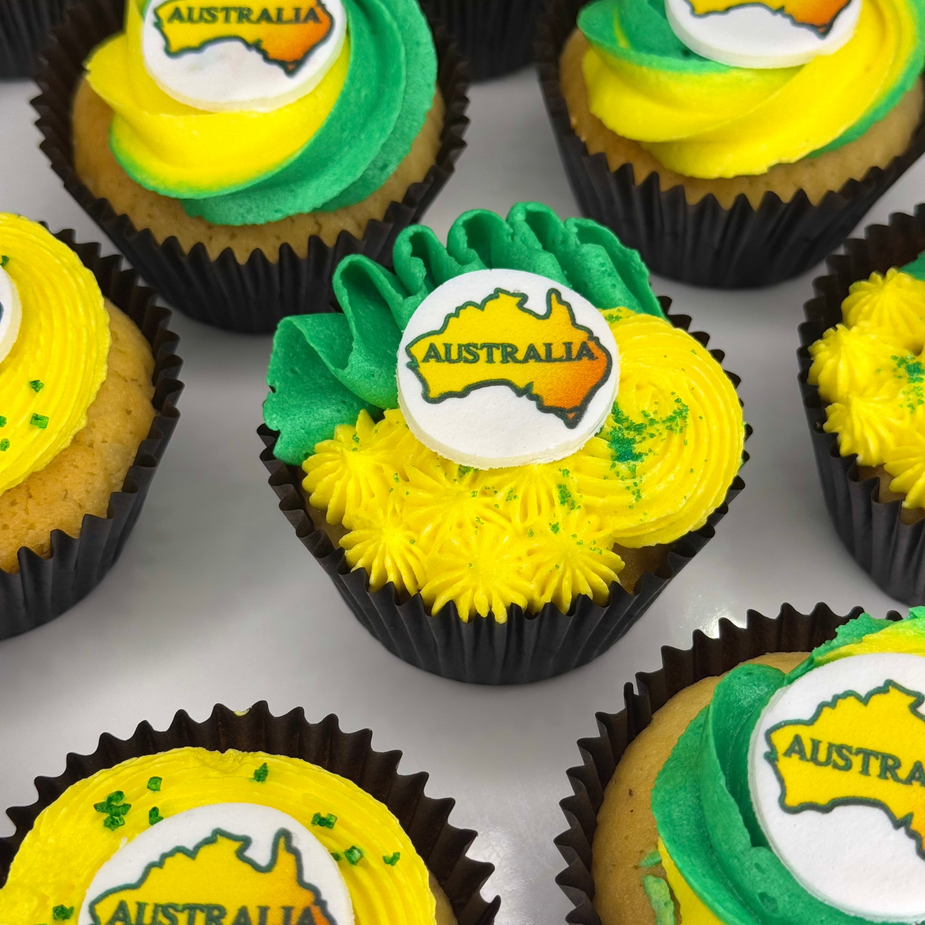Celebrate Australia Day in style with our vibrant Aussie Gold Bites! These cupcakes feature a soft vanilla sponge topped with rich, creamy frosting, bursting with flavor and beautifully festive in green and gold. Perfect for any celebration, they’ll add a colorful touch to your gathering. 🧁🇦🇺