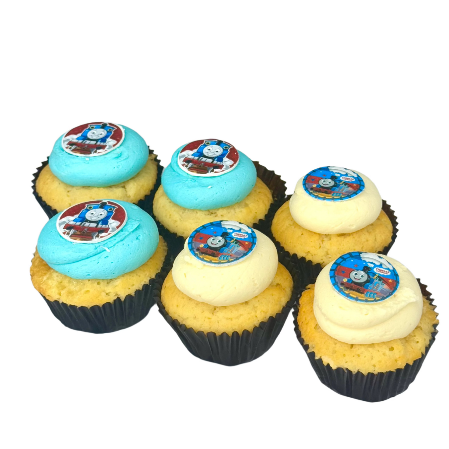 All aboard for a sweet adventure with our Thomas the Train Cupcakes! These delightful treats feature a moist base of your choice, topped with cheerful swirls of blue and white vanilla ganache, and finished with a signature Thomas the Train token for a fun, railway-ready touch.