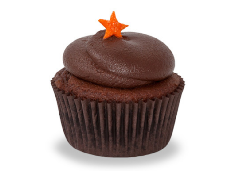 Belgian Callebaut chocolate cupcake topped with a Callebaut chocolate and Willie’s 100% Cacao ganache & fondant orange star.