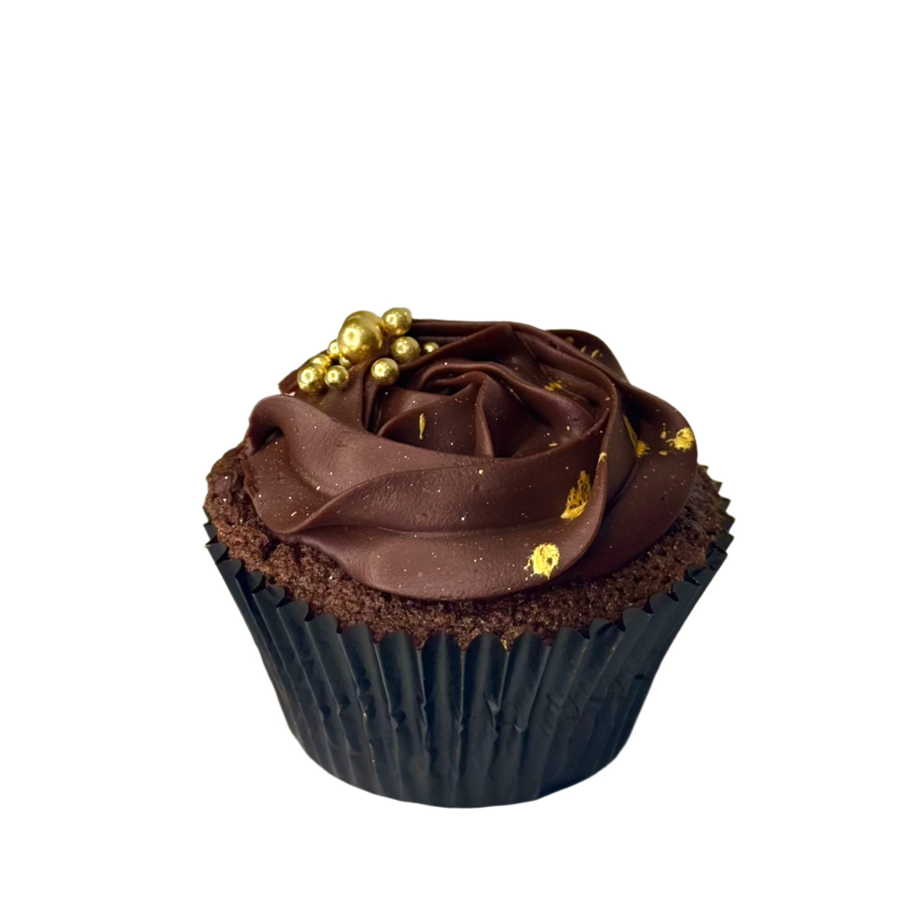 Our Chocolate Rose Cupcake features a moist chocolate sponge topped with a smooth chocolate ganache piped into a delicate rose shape.