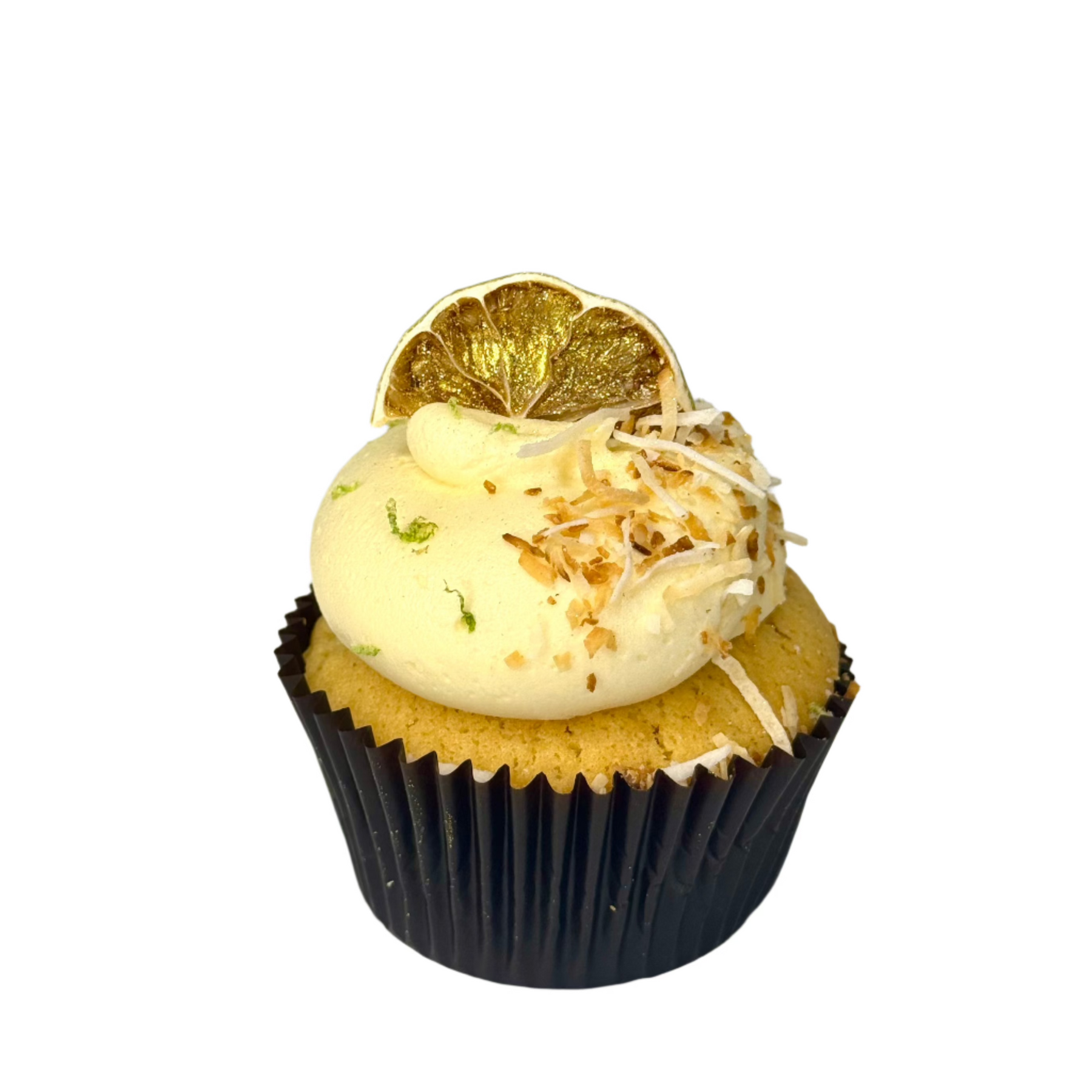 Our Coconut Lime Cupcake features a light and fluffy vanilla sponge, topped with a smooth lime buttercream and a sprinkle of toasted coconut.