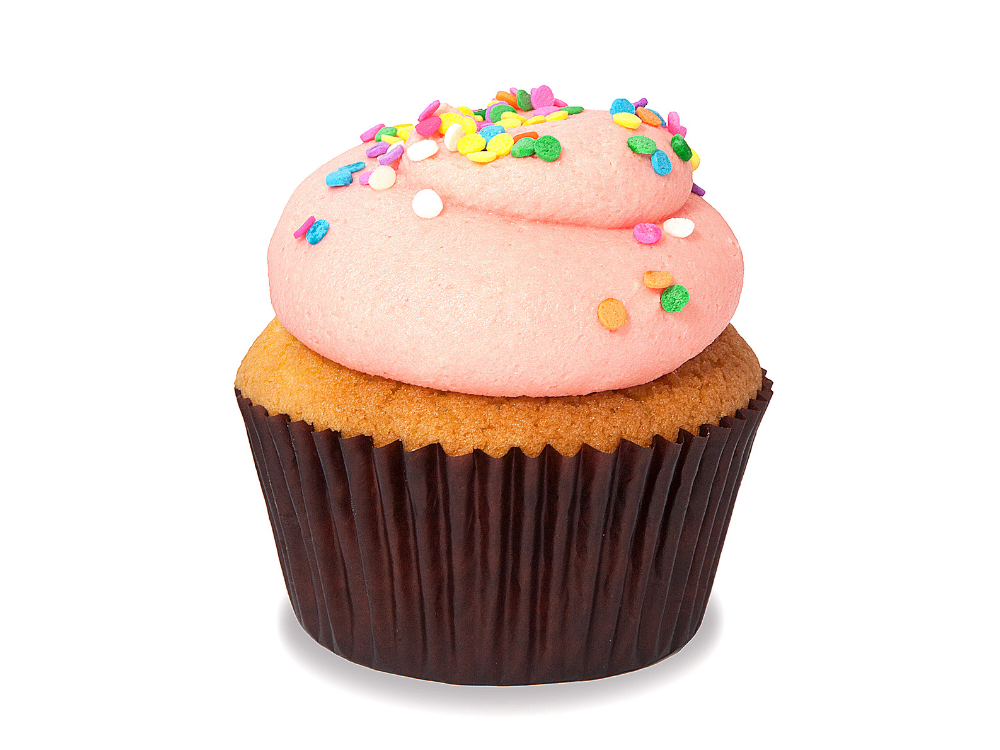 A light Organic vanilla sponge topped with whipped buttercream and pastel multi-coloured confetti sprinkles.