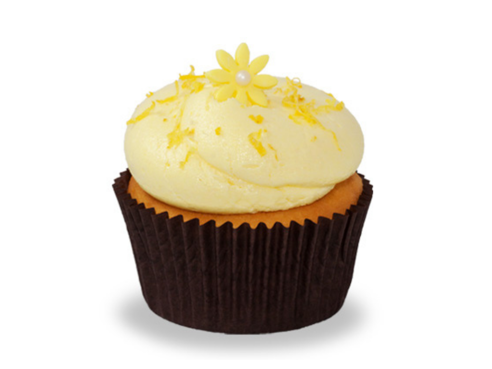 A delicious sponge baked with fresh lemon juice, topped with light yellow buttercream, lemon zest and a mini lemon flower.