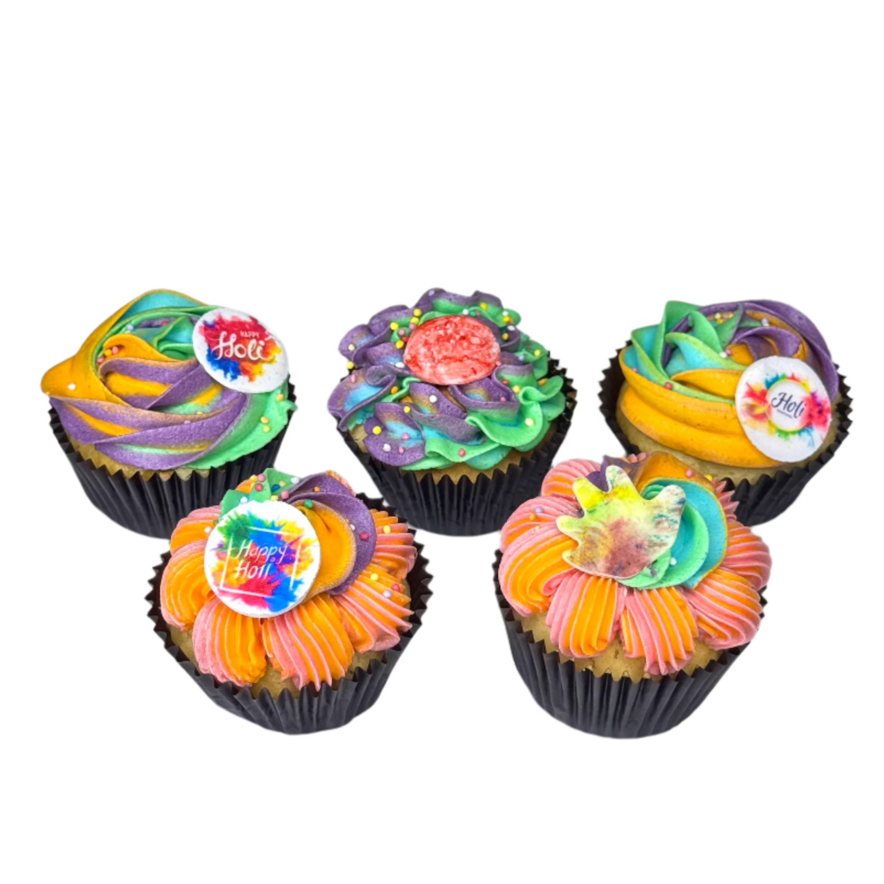 Make your Holi even sweeter with these colorful cupcakes! 💛💙💚💜❤️
