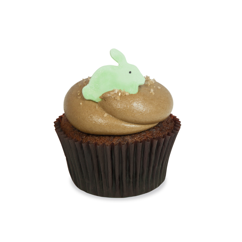 Chocolate: Belgian Callebaut chocolate cupcake topped with a Callebaut chocolate & Willie’s 100% Cacao ganache buttercream and pastel green bunny token.