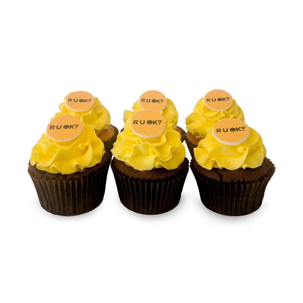 Choose from 6 or 12 of our very best cupcakes topped with yellow ruffled buttercream and yellow R U OK? Tokens. Price includes tokens.