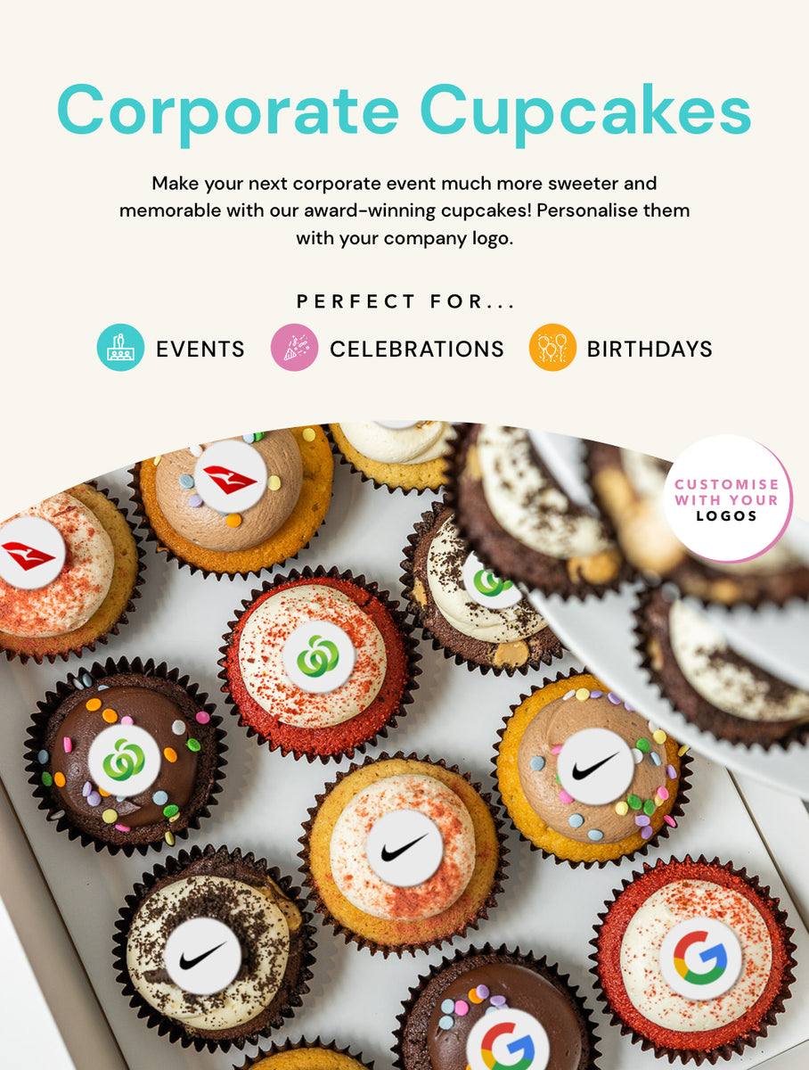 Make your next corporate event unforgettable with our personalised cupcakes, tailored to make your company, product, or brand stand out.