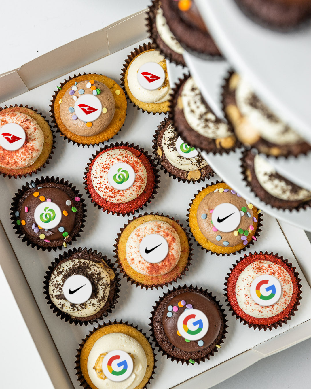 Make your events memorable with corporate branded cupcakes topped with your brand’s logo.